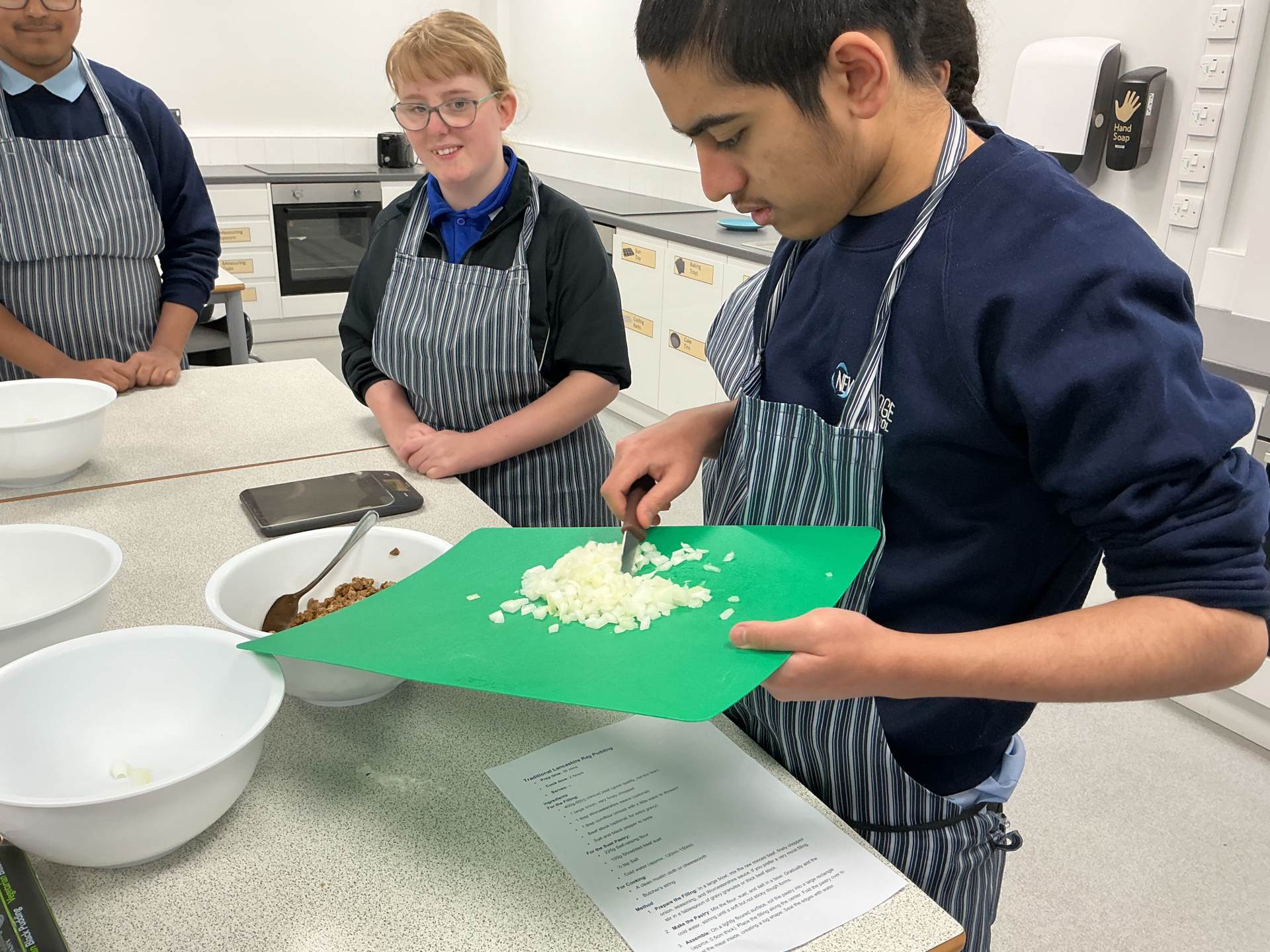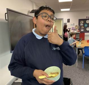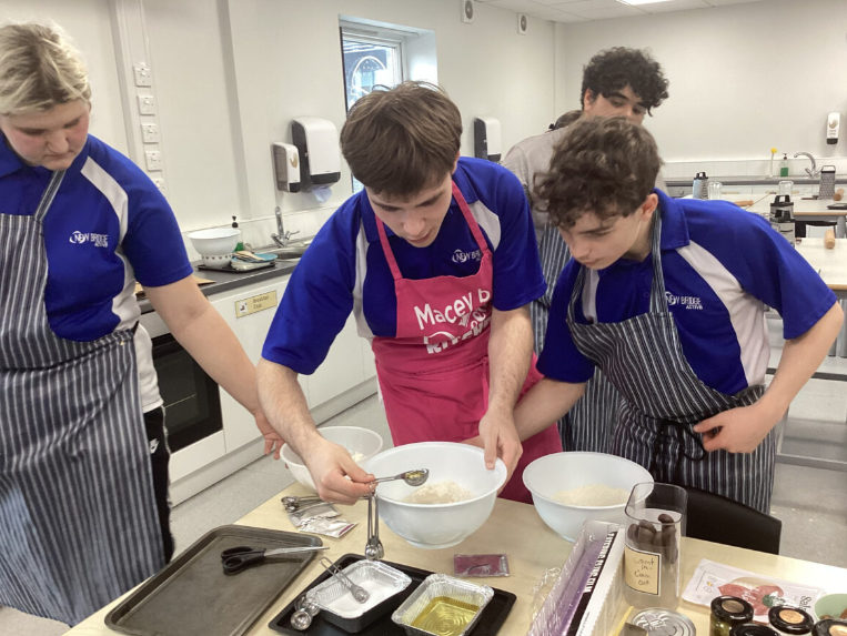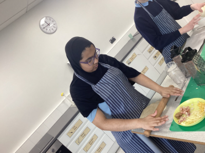 Students made rag puddings (a local Oldham food tradition) the old-fashioned way using cloth and steaming them. We also tasted a rare Lancashire delicacy, Vegan Black Pudding. Some students really enjoyed it, others were not so keen but well done for trying something new. We invited staff to sample our cooking. Everyone enjoyed it.