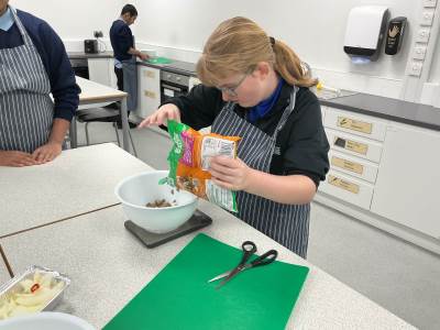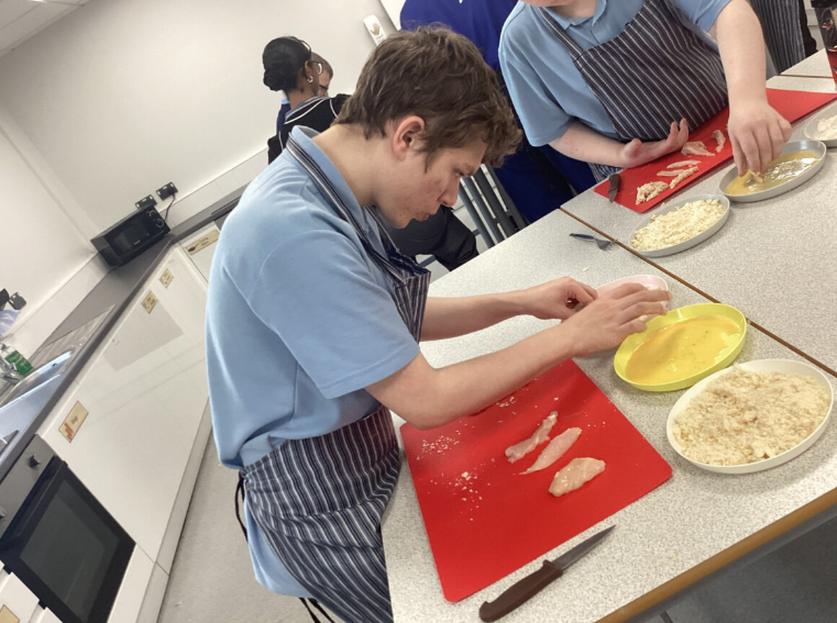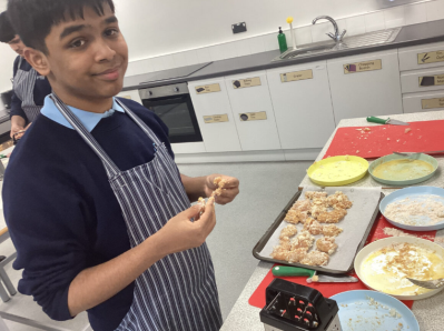 This term in food it is all about Fake Away, the pupils have been researching local take away options and have been making their own cheaper, healthier versions in class. So far we’ve made pizza, practicing our weighing, measuring and kneading. Last week we made chicken strips, some classes even pushed themselves to make a Katsu curry sauce from scratch to go alongside! They have demonstrated excellent hygiene and understanding of how to judge when meat is cooked and safe to eat.